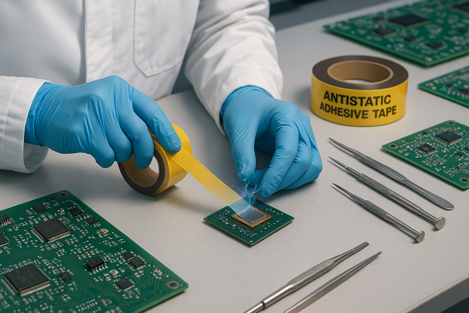 Printed circuit board (PCB) assembly and the handling of semiconductor components are among the highest-priority use cases for antistatic tapes. In pick-and-place operations, tape feeders and carrier tapes that accumulate charge can misfeed or attract contaminants; in reflow and wave-solder environments, charged particles can cause solder defects. Using tapes with controlled surface resistivity helps maintain ESD-safe process windows and minimizes assembly failures caused by electrostatic events.